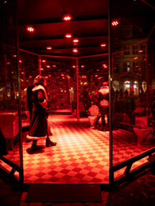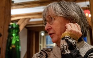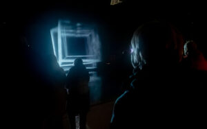 Die Freude an den Arbeiten der EVILichtungen und auch die frostigen Temperaturen trübte das nicht. Bei Eiseskälte standen die Ausflügler aus der Bergstadt vor dem „Wasserparadies“ an der Hannoversche Straße an. Endlich im Schwimmbad angekommen, konnten sie eine Arbeit des finnischen Lichtkünstlers Niko Tianinen bewundern. Für die Lichtrouten 2025 hatte er eine interaktive Lichtinstallation, die das Phänomen der Irideszenz erforscht, entwickelt. Zu sehen war sie im ehemaligen Wellenbad. Bei den EVILichtungen zog es ihn erneut in ein Bad. Im „Wasserparadies“ zeigte er „Translucens“, eine holographische Projektion auf einem Wasservorhang. Die Betrachterinnen und Betrachter wurden in den rhythmischen Fluss von Bewegung, Form und Klang hineingezogen und erlebten das Werk als eine meditative, fast tranceartige Reise. Zudem konnten sie sich im gut beheizten Bad für einige Minuten aufwärmen.
