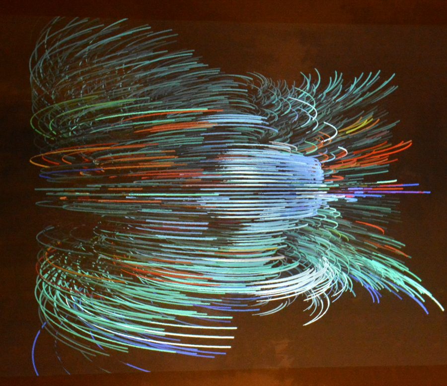 Dem ein oder anderen Besucher gönnt der 40-jährige im tunesischen Kasserine geborene Künstler zwischendurch eine Art Mini-Workshop. Dann wird für das Publikum ersichtlich, mit welcher Akribie Karim Jabbari sich bewegen muss, um seine feinen Linien, die breiten Striche, Kreise und Ellipsen zu erzeugen.