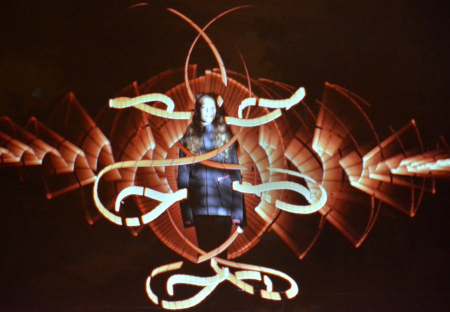 Manchmal stellt er Menschen aus dem Publikum in den Mittelpunkt seiner Lichtkunst. Karim Jabbari lässt sie zunächst als Schattenriss erscheinen und formt fantastische Formen um die Silhouette. Dann der Höhepunkt: Er leuchtet seine Mitspieler von vorn an bis sie schließlich mit Kleidung und Gesicht vollständig erkennbar sind.