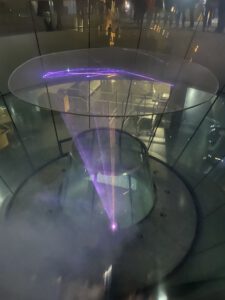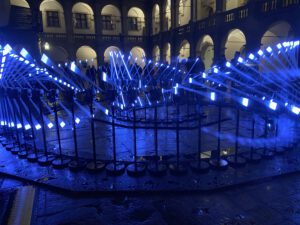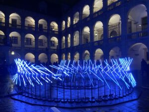Eine dynamische Lichtskulptur aus Frankreich, die Architektur und Musik in poetische Bewegung brachte.