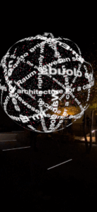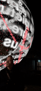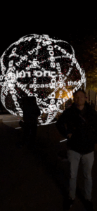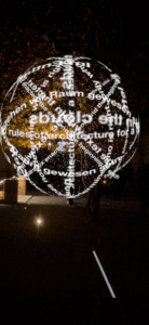 Begehbare Lichtkugeln mit Texten von Rosa Pock und Ludwig Wittgenstein verbanden Philosophie, Sprache und Raum.