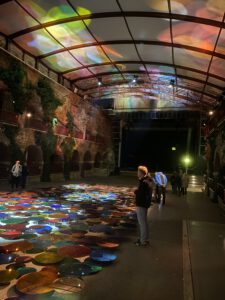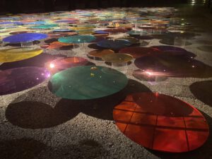 Mehr als 700 farbige Spiegel tauchten die Schlossbergbühne in ein Meer aus Licht und Reflexionen. Die Besucherinnen und Besucher wurden Teil einer lebendigen, ständig wechselnden Farblandschaft.