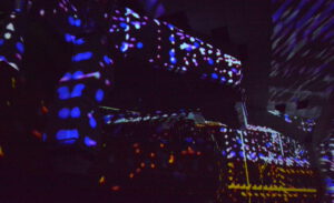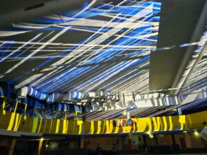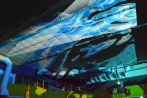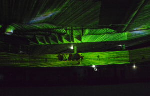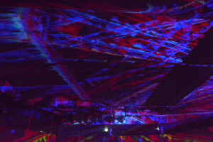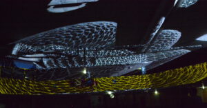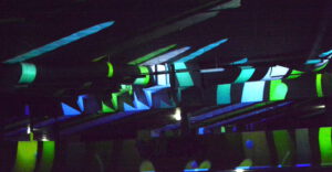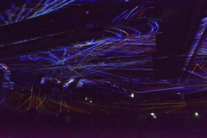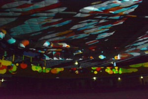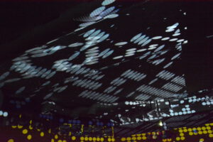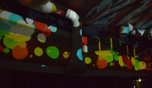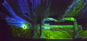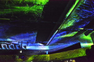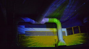 In der 2006 aufgegebenen Freizeitanlage war jede Menge los. Der Lichtkünstler Kurt Laurenz Theinert und die Soundkünstlerin Anja Kreysing zelebrierten in Lüdenscheids größtem Lost Place die perfekte Welle. Sie lösten beim Publikum damit Wogen der Begeisterung aus. Knallige Farben, geometrische Muster, Sternenhimmel, Strahlen an der Decke, farbige Punkte, die den Raum eroberten – Kurt Laurenz Theinert zog in den drei Performances alle Register.