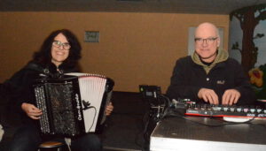 Dazu die Musik von Anja Kreysing: Sie entlockte ihrem Akkordeon elektronisch verfremdeten Klänge. Mal ein rhythmisches Donnern und Dröhnen wie in einer Maschinenhalle, mal beschwingte Klänge oder stakkatohafte Einzelakkorde – Anja Kreysing setzte ihr computerisiertes Akkordeon im Sinne einer zeitgenössischen Kinoorgel für mächtige Klangwände und immersive Soundscapes ein.