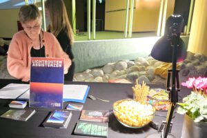 Auch das Vorstands-Team des Lichtrouten-Kollektivs, einer Community, die sich für die Fortführung des Festivals einsetzt, zog eine positive Bilanz. „Das war beste Werbung für die LICHTROUTEN vom 20. bis 29. März 2025“, sagte Thomas Meermann. Auch das Kuratoren-Duo Bettina Pelz und Tom Groll hat Grund zur Freude. Zwar steht für das neuntägige Festival im nächsten Jahr schon ein Kern-Team von Assistenzen. Am Samstag ließen sich weitere Besucherinnen und Besucher begeistern und trugen sich als LICHTROUTEN-Unterstützerinnen und Unterstützer in die Liste ein.