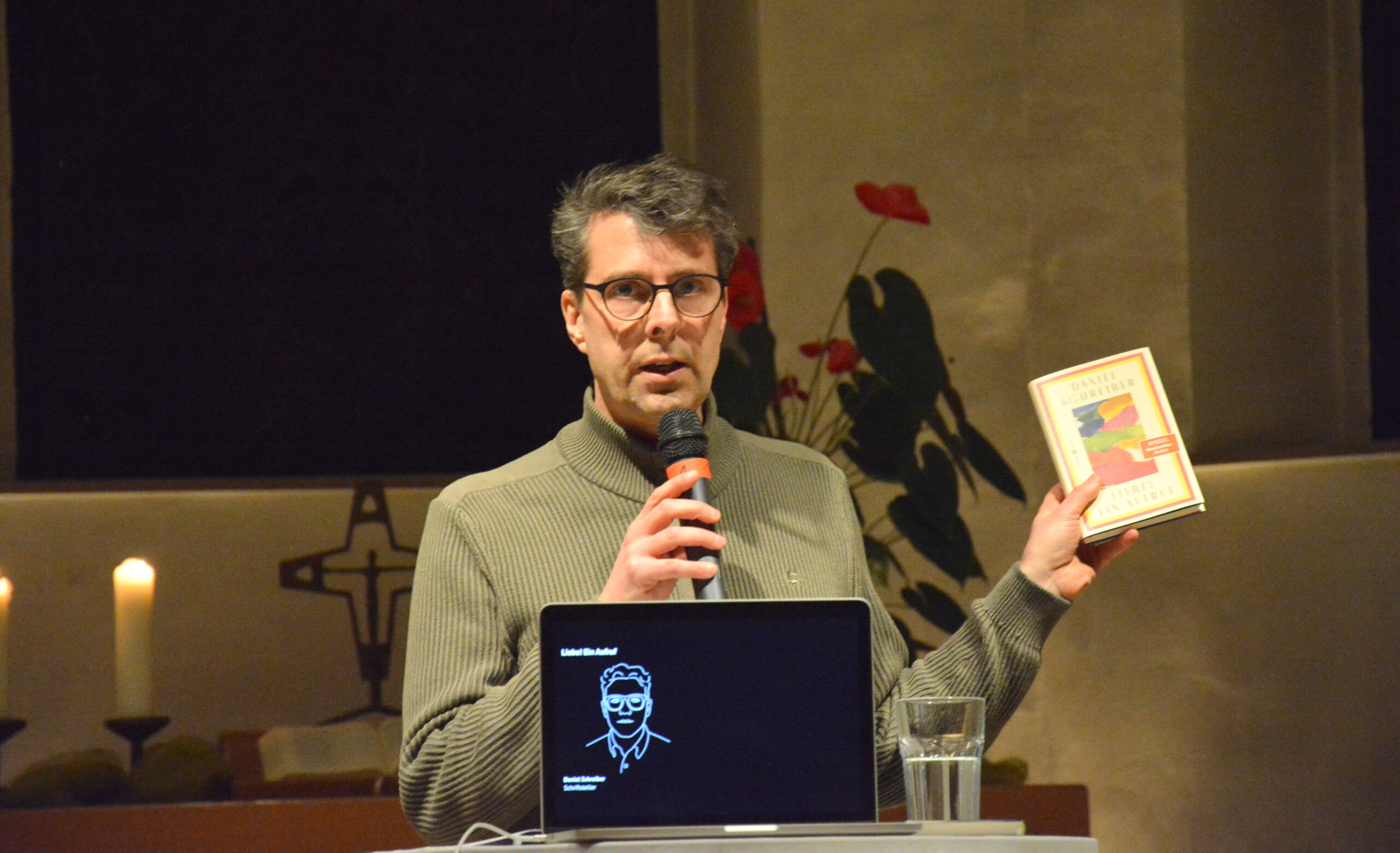 Am 6. Februar hielt er auf Einladung des Fördervereins der Ev. Gemeinde Oberrahmede einen Vortrag zum Thema „Hoffnung bei Nacht – Kunst, Freiheit und gesellschaftlicher Mut“. Der Abend in der Kirche kreiste reich bebildert um die Frage, wie Hoffnung, Freiheit und Mut in Zeiten gesellschaftlicher Krisen lebendig bleiben können. Ausgangspunkt war das Bild der „Nacht“ – als Metapher für persönliche, politische und globale Dunkelheiten wie Angst, Gewalt, Klimakrise, Ausgrenzung und Bedrohung demokratischer Werte.