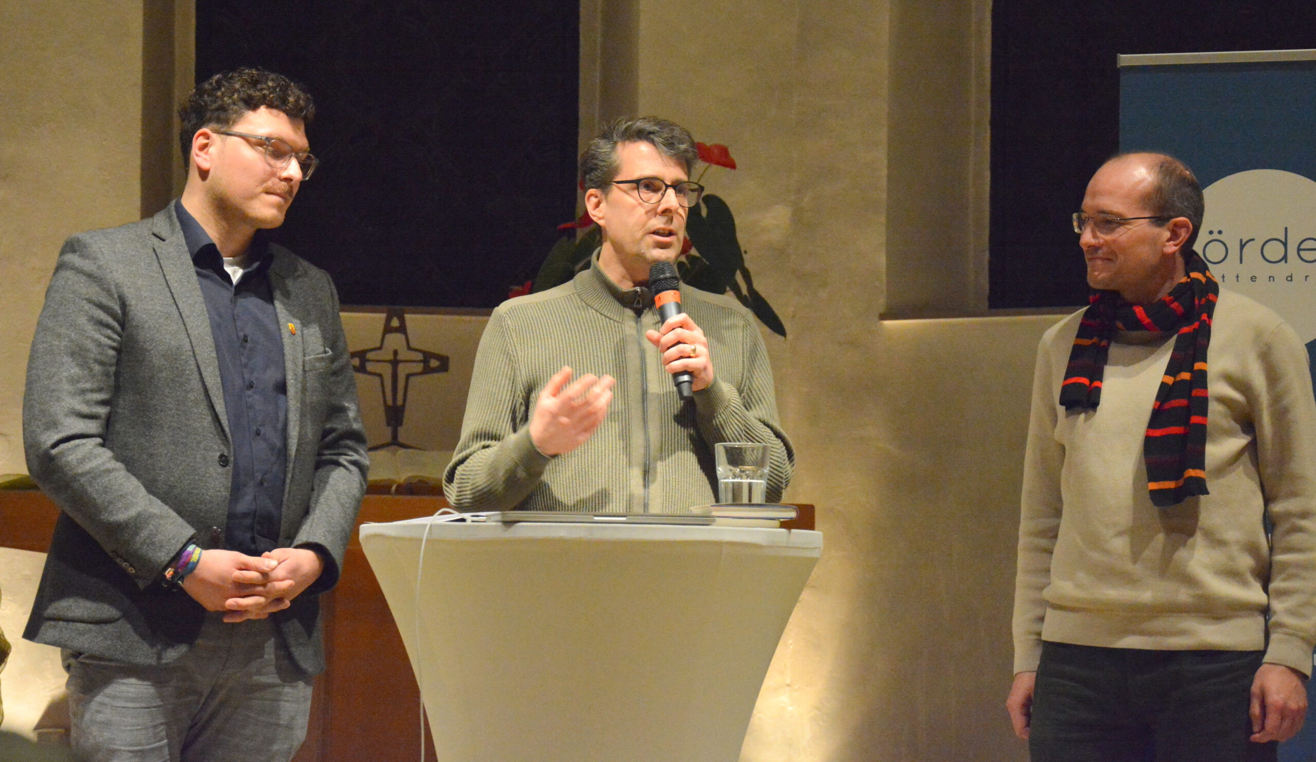 Im anschließenden Gespräch mit dem SPD-Kommunalpolitiker Dominik Hass-Sommer und dem Pfarrer Michael Siol lenkte Thomas Schielke die Perspektive auf Lüdenscheid. Hass-Sommer und Siol betonen, dass Hoffnung vor allem aus realen Begegnungen, ehrenamtlichem Engagement, Gemeinschaft und gemeinsamen Werten entstehe und nicht aus sozialen Medien. Politik und Kirche könnten voneinander lernen: durch Zusammenhalt, Dialog, klare Haltung gegen Extremismus und die Bereitschaft, Verantwortung zu übernehmen.